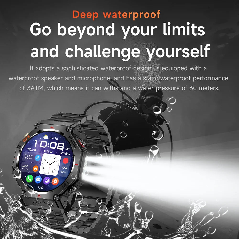 2025 HUAIWE Montre Connectée Militaire 2025 – GPS, IA ChatGPT, Étanche 5ATM, 530mAh
